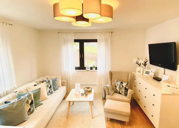 To enjoy your vacation in Ebersburg, stay at the spacious 80 m² Ferienwohnung Marlene 80 Qm Ebersburg, which is 3.7 km from Wachtkuppel Mountain and approximately 10 minutes by car from the ruined hill Ebersburg Castle. The apartment features a terrace that overlooks the garden.
